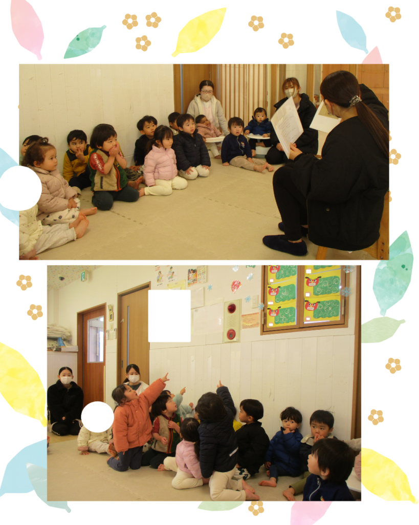 【さんくすピッピ保育園】 2025.01.22 保育園事業 土曜保育の様子です😀 土曜日利用の園児さんが少ないので、合同保育になります✨ 大きなブロックでハウスを作ったようです⭐ 午後おやつの少し前の時間は 午睡明けパジャマから洋服へお着替えをし先生とトイレへ行き 自分のクラスの椅子に座りおやつになるまで本や机におもちゃが出ています😃 この日のおやつはきな粉豆乳パンケーキでした😊 1.2歳児は上手にフォークを使って食べれています🍴 0歳児は自分で持つ練習をしています😀 前の記事を見る 一覧へ戻る 次の記事を見る この記事をシェアする: