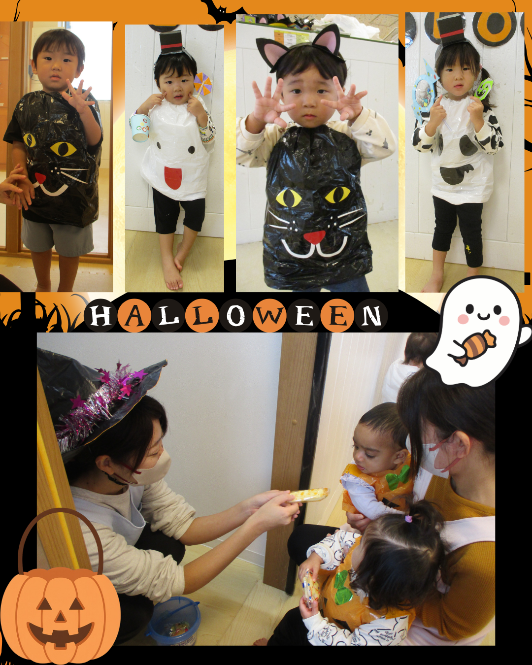 【さんくすピッピ保育園】 2025.11.06 保育園事業 こんにちは、さんくすピッピ保育園です。 先週のハロウィンの様子になります👻 可愛らしい姿に変身しました😊 ハロウィンのお話やダンスをし、園内に魔女がいるとの事でクラスごとに探しに行くことにしました✨ 魔女を見つけ「トリックオアトリート」と頑張って伝えると一人ずつお菓子を受け取ることが出来ました🌈 前の記事を見る 一覧へ戻る この記事をシェアする: