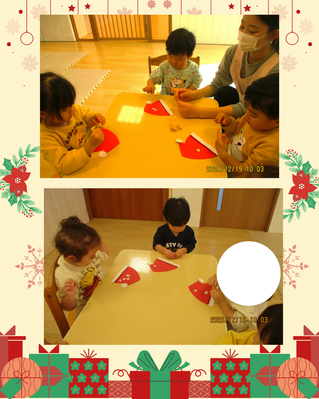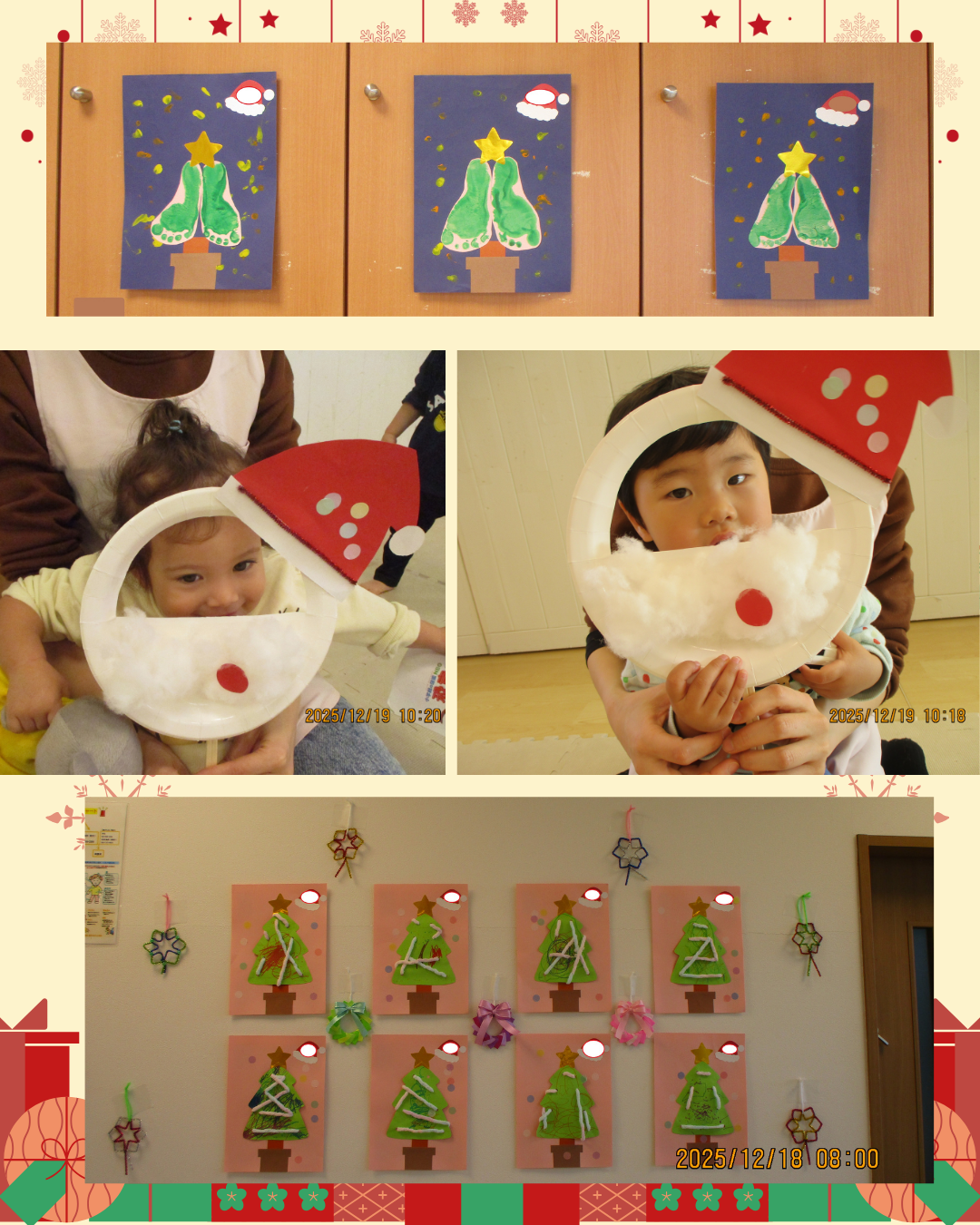 【さんくすピッピ保育園】 2025.12.23 保育園事業 こんにちは、さんくすピッピ保育園です😊 12月お誕生日のお友だちです!大きくなったね🎉お誕生日おめでとうございます✨ クリスマスに向け壁画や製作が増えてきました🎅さんくすピッピ保育園のクリスマス会が明日予定となっております。 今年はどんなサンタさんがくるのか楽しみです😃🎁 前の記事を見る 一覧へ戻る この記事をシェアする: