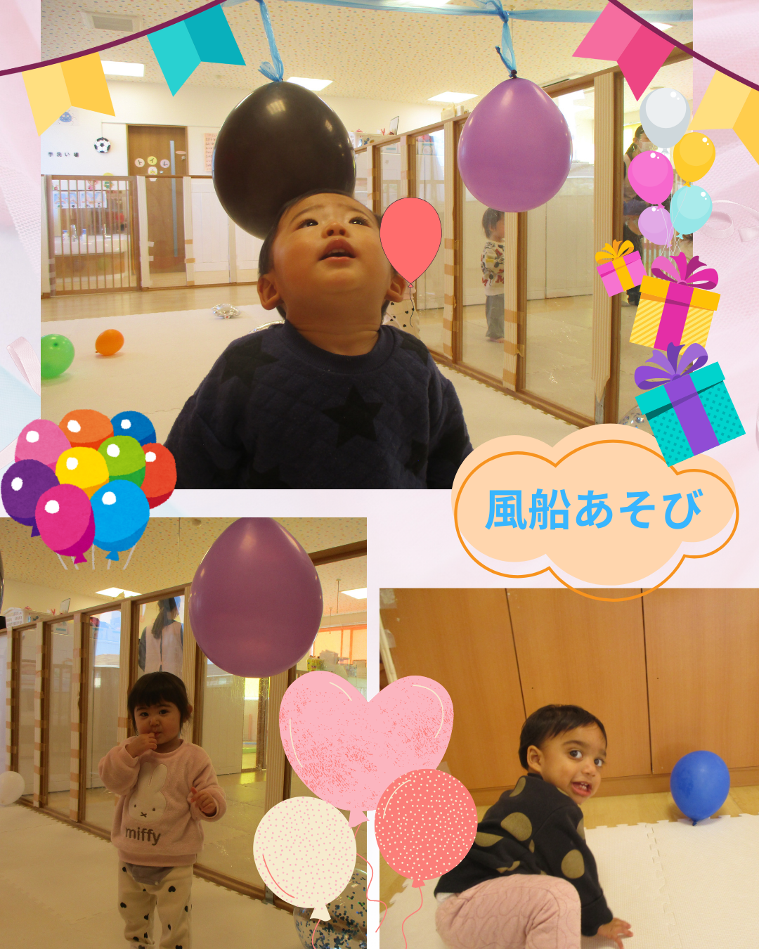 0歳児さんは風船遊びに夢中になって遊んでいました😄