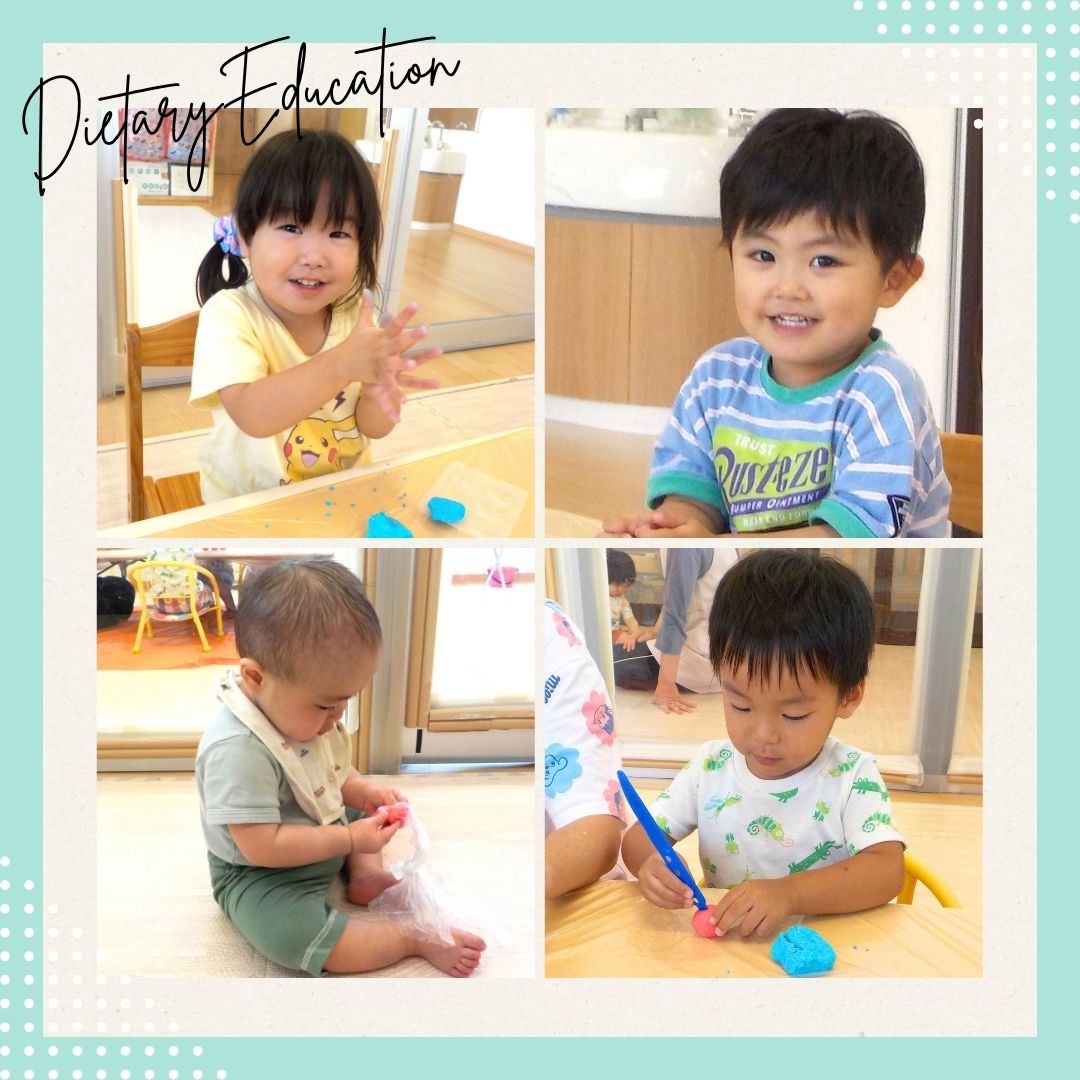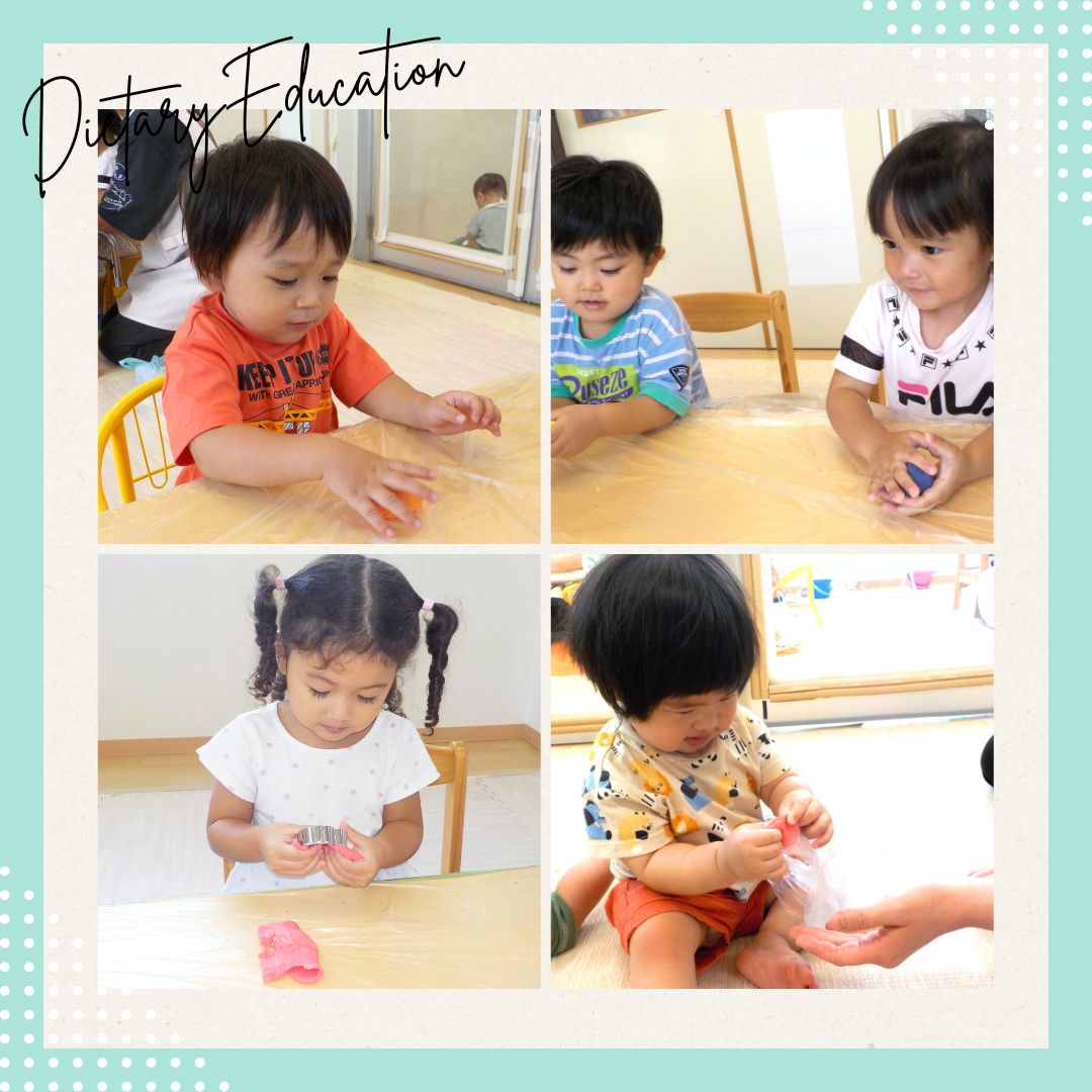 コロコロと丸めて見たり、伸ばしてみたりつまんだり感触を楽しむことができました😊色とりどりの米粉粘土を視覚や触覚など様々な五感を使って楽しみました🤩