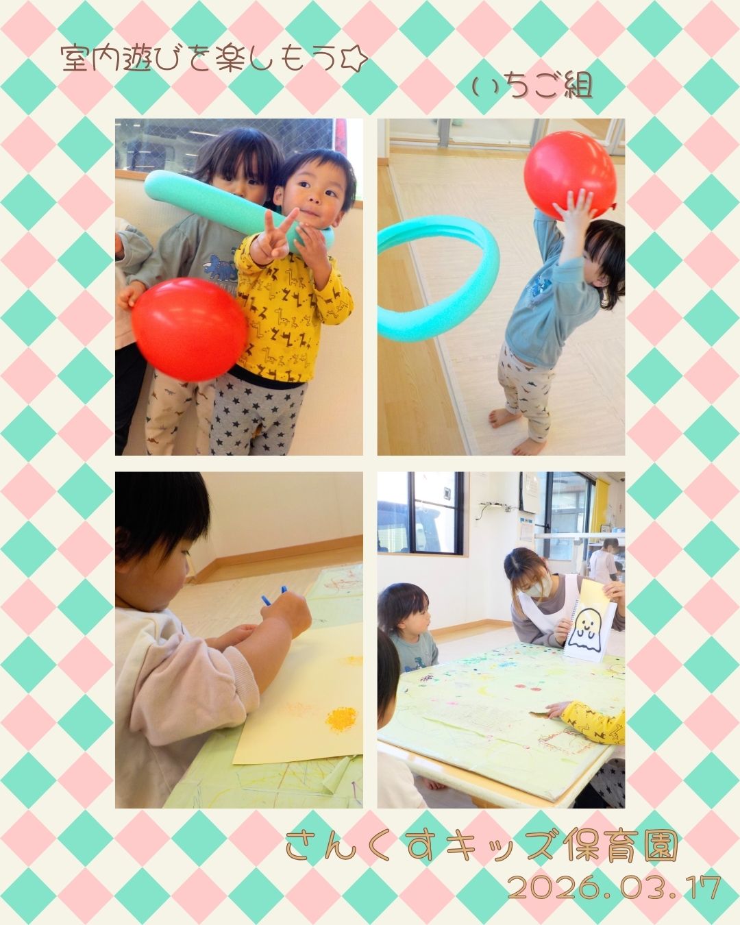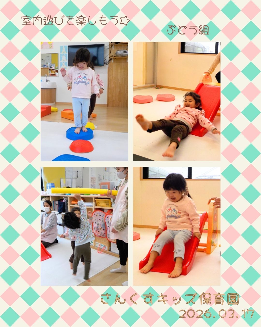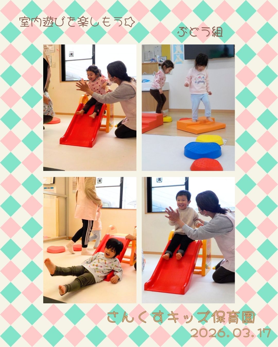 【さんくすキッズ保育園】 2026.03.17 お知らせ 室内遊びを楽しもう☆ こんにちは。さんくすキッズ保育園です😊 滑り台やバランスストーンで身体を動かしたり、製作活動をしたり室内でも元気いっぱい過ごしました☆ 前の記事を見る 一覧へ戻る この記事をシェアする: