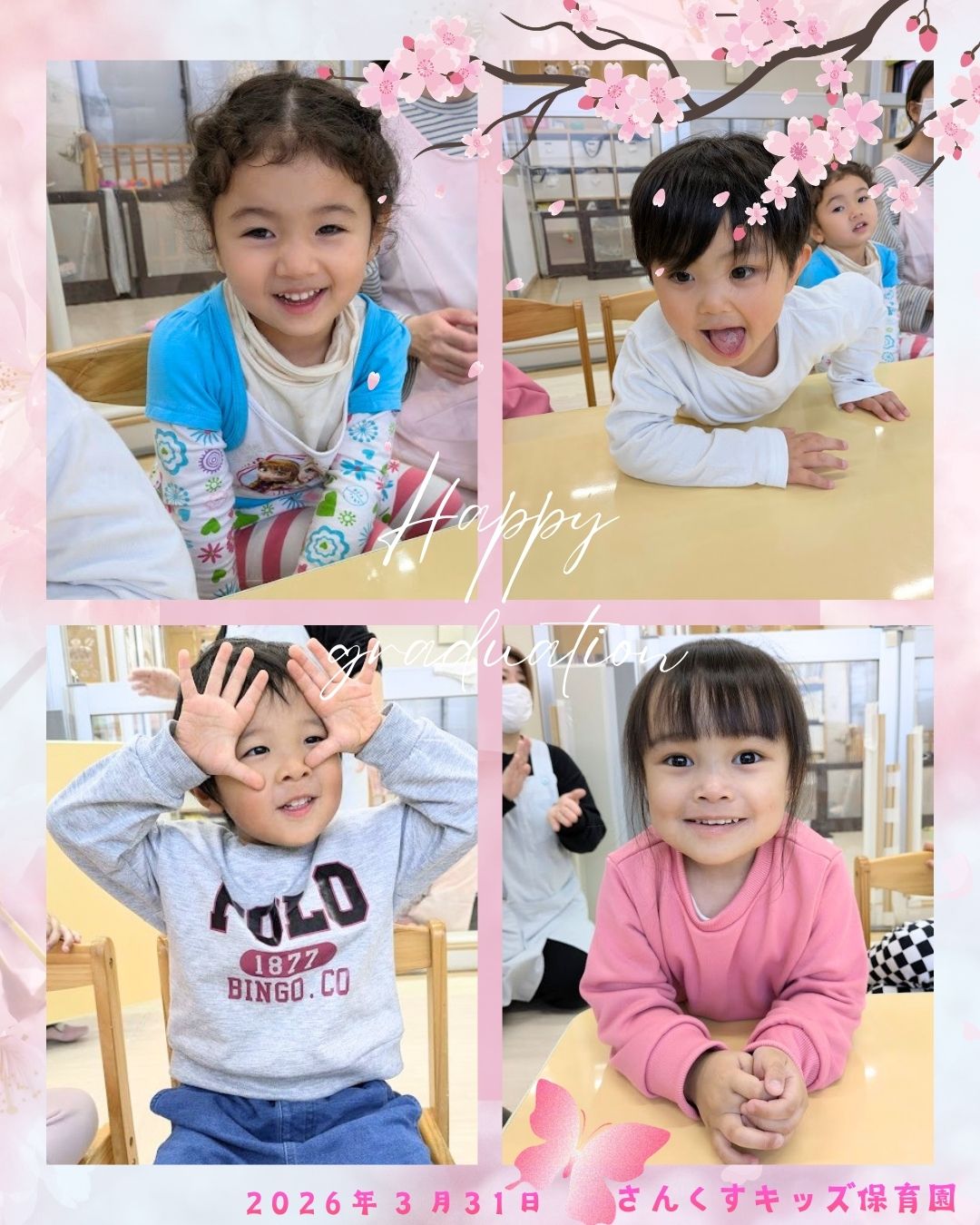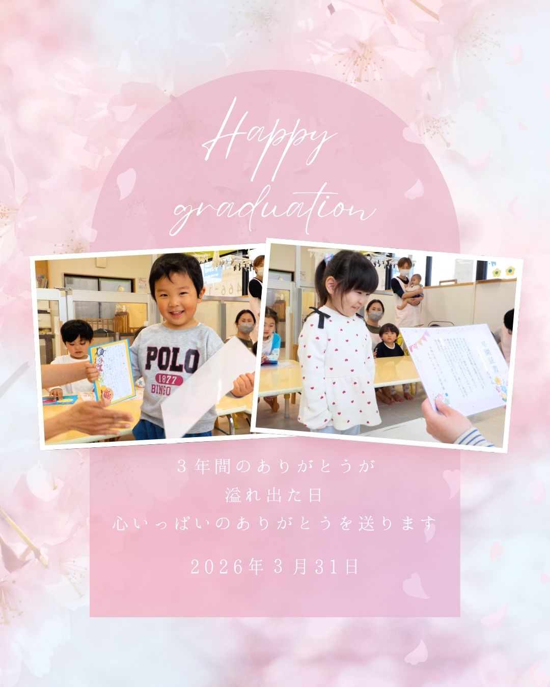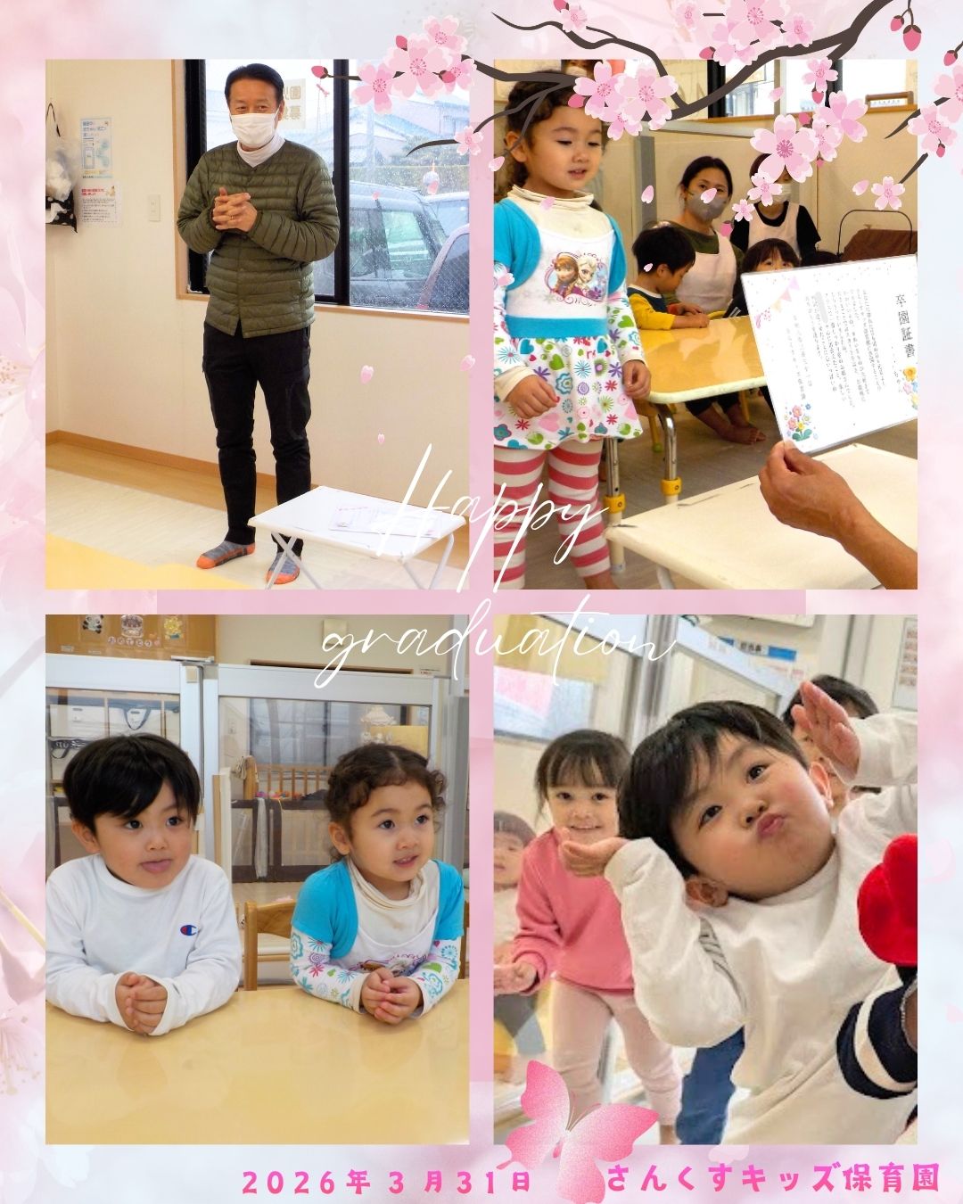 【さんくすキッズ保育園】 2026.04.07 お知らせ 令和7年度卒園式 こんにちは。さんくすキッズ保育園です😊 令和7年度卒園式が行われました。 楽しいこともちょっぴり涙した日もすべてが大切な思い出です。 これから始まる新しい毎日が、笑顔溢れる素晴らしいものになりますように✨ 卒園おめでとう🎉 前の記事を見る 一覧へ戻る この記事をシェアする: